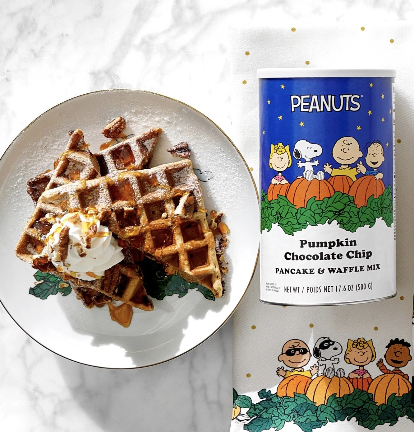 >< Williams Sonoma has a whole adorable collection of Peanuts Great Pumpkin stuff, including this Chocolate Chip Pancake & Waffle Mix that is so iconic and fun. >< $19.95