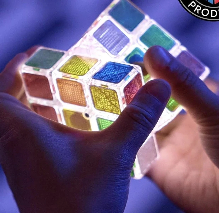 > Add another level of challenge to a classic with a Rubik’s Pulse. The cube appears all white, but has a button that temporarily lights up each square to reveal its color. You have to solve before the lights go out and you’re left in the dark. Good luck! > $20